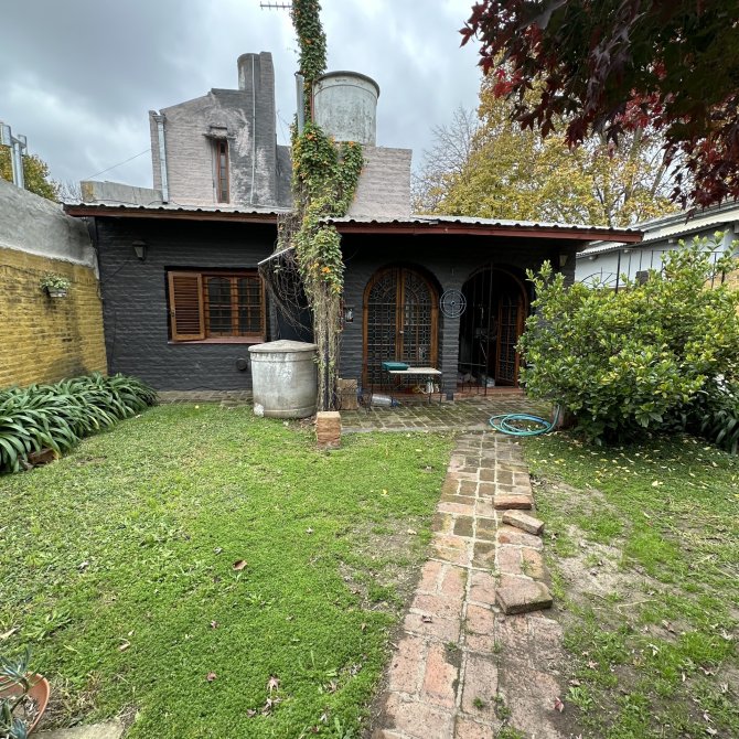 Cuenta con 2 dormitorios en planta baja, living, comedor, cocina, escritorio, 1 dormitorio en planta alta con baño en suite, jardin al frente y amplio patio al fondo arbolado con un deposito para herramientas.